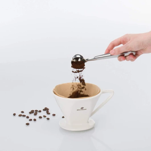 Belle cuillère à café en acier inoxydable avec un long manche et un clip de blocage:pince de fermeture, pour mesurer et portionner le café moulu, convient également pour mesurer le thé
